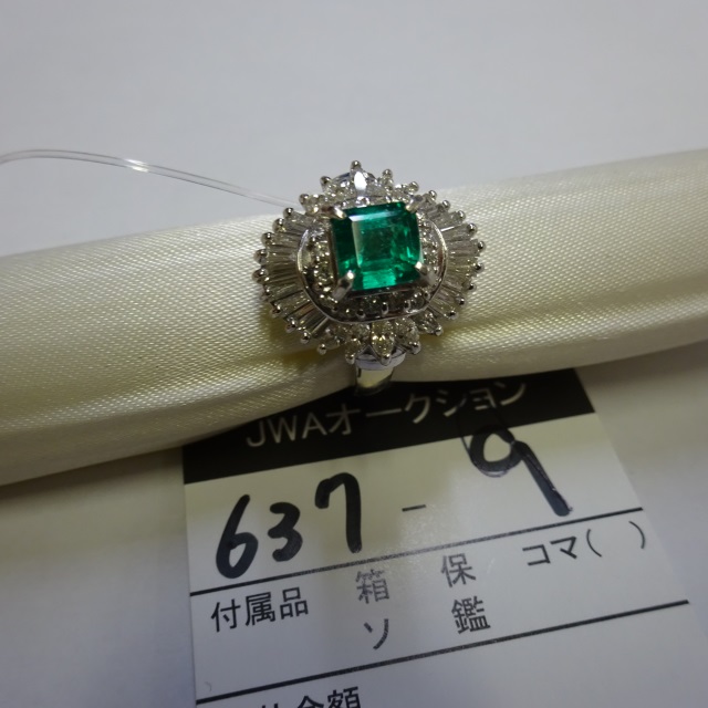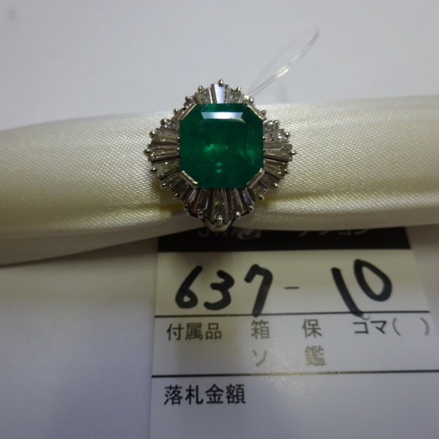 リング エメラルド ダイヤ Pt900 10.10g 石目:3.17 TD1.05