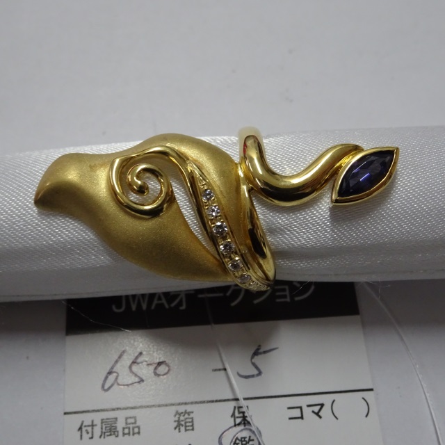 リング アイオライト ダイヤ K18 10.10g 鑑 石目:0.418 D0.12