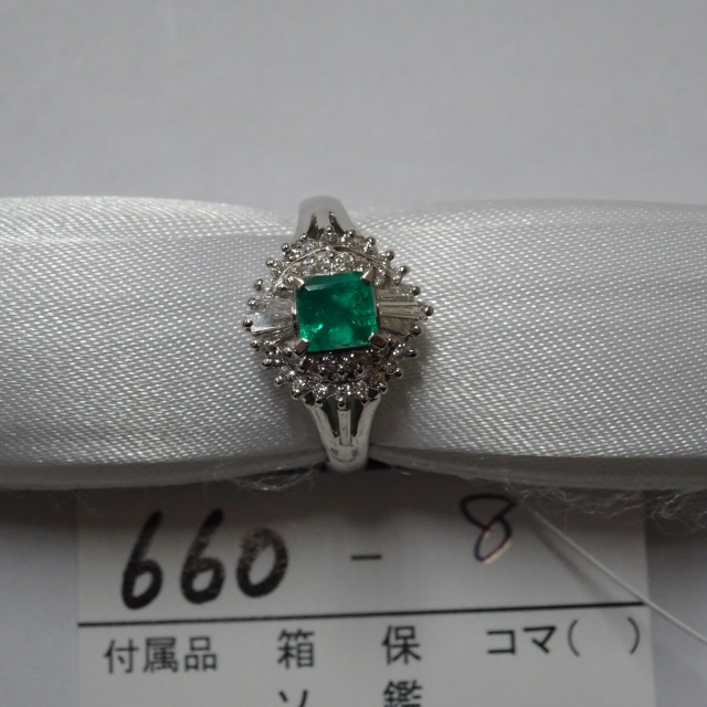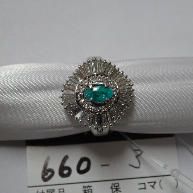 リング エメラルド ダイヤ PT 4.10g 石目:0.48 0.11