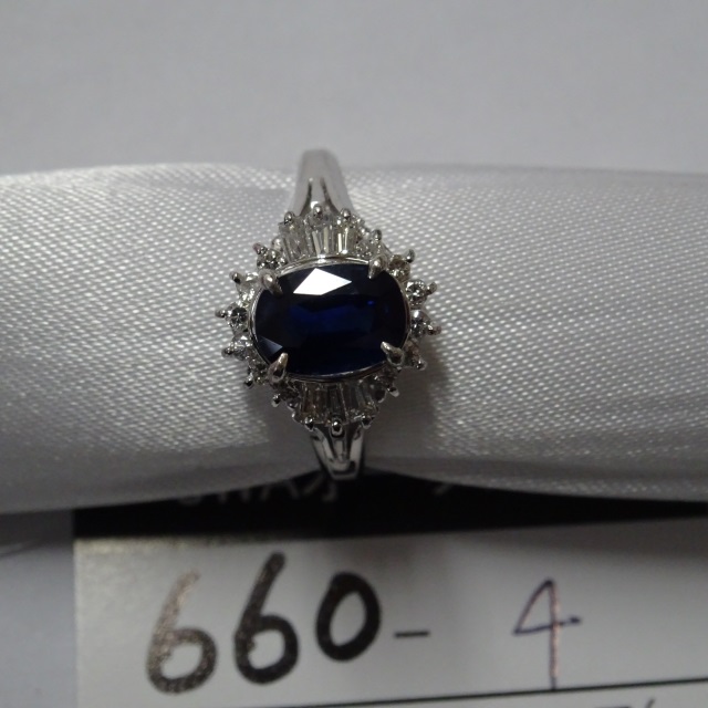 リング サファイア ダイヤ PT 5.70g 石目:0.76 0.40