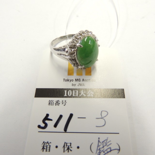 リング ヒスイ ダイヤ Pt900 7.20g 鑑 石目:3.91 0.18