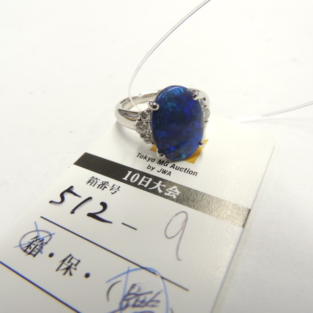 リング ブラックオパール ダイヤ Pt900 9.20g 鑑 石目:2.96 0.28