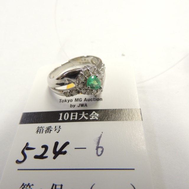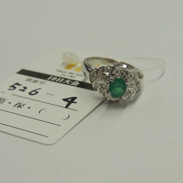 リング エメラルド ダイヤ Pt900 6.70g 鑑 石目:E0.55 D0.35