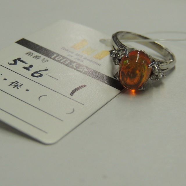 リング ファイヤーオパール ダイヤ Pt900 7.40g 石目:FOP3.38 D0.17