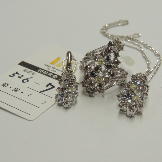リング ネックレス ピアス 3点 ダイヤ ピアス片側 K18WG 17.50g 証 石目:2.00 0.75 1.50 0.75