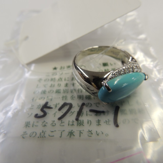 リング トルコ石 ダイヤ Pt900 12.10g 中ソ 石目:4.45 D0.26