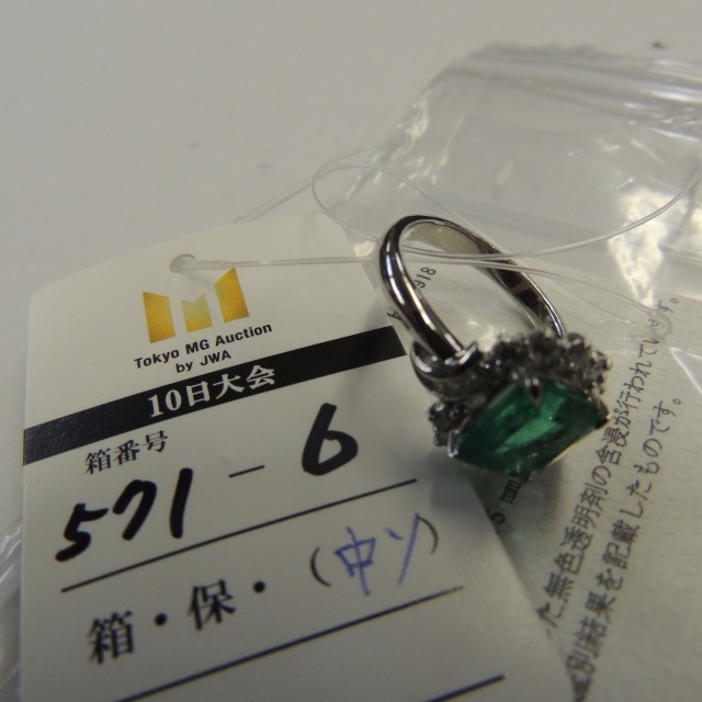 リング エメラルド ダイヤ Pt900 8.30g 中ソ 石目:3.11 D0.56