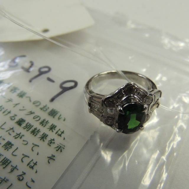 リング グリーングロッシュラーガーネット ダイヤ 0.83 0.59 Pt900 7.80g 中ソ