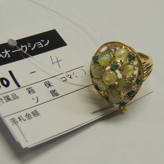 リング キャッツアイ エメラルド ダイヤ K18 10.90g 石目:C6.26 E0.52 D0.27
