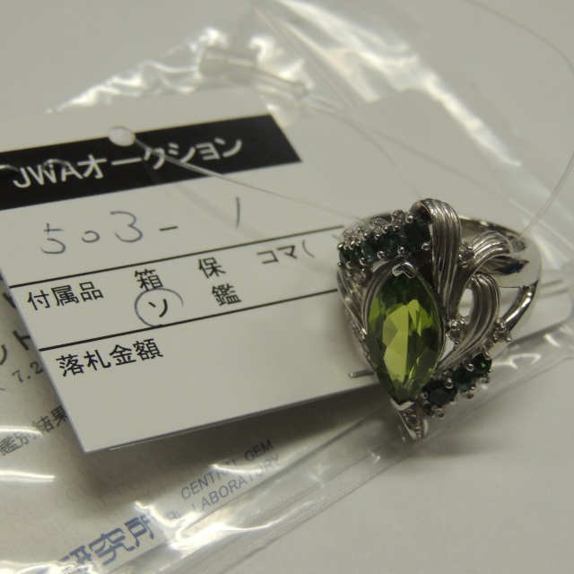 リング ペリドット ダイヤ Pt900 20.40g 中ソ 石目:P3.41 D0.25