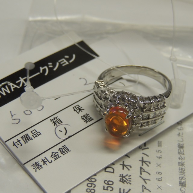 リング ファイヤーオパール ダイヤ Pt900 10.10g 中ソ 石目:OP1.56 D1.11
