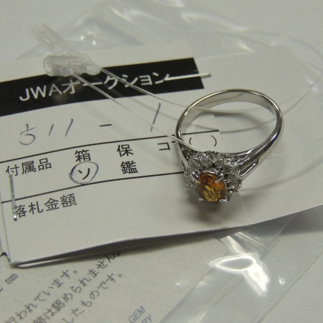 リング ゴールデンサファイア ダイヤ Pt900 5.40g 中ソ 石目:S0.97 D0.25