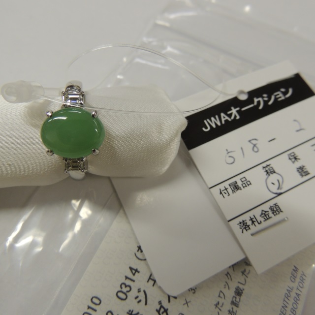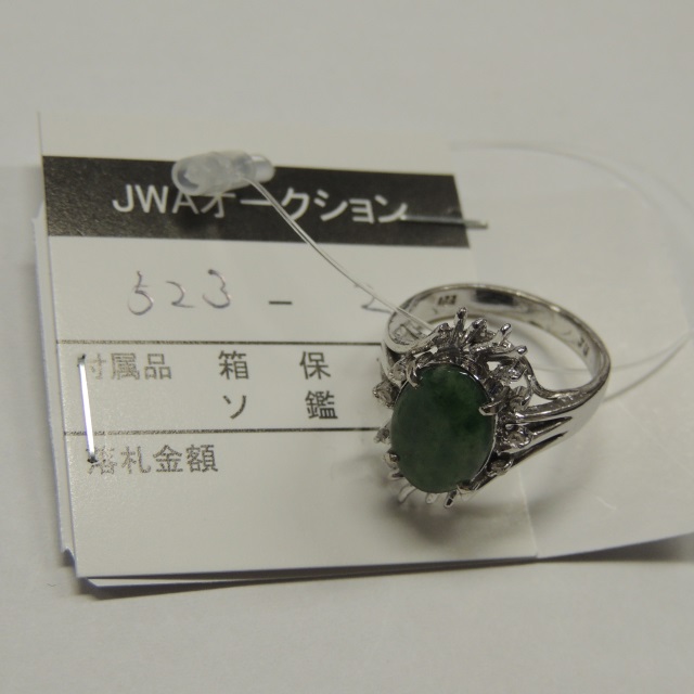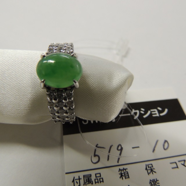 リング ヒスイ ダイヤ Pt900 7.30g 中ソ 石目:J3.52 D0.314