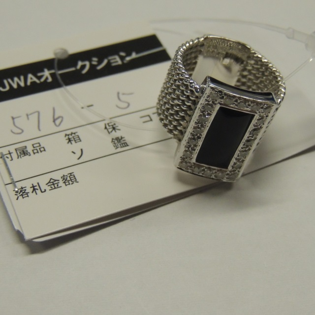 リング 黒色石 ダイヤ K18WG 14.20g 石目:D0.45