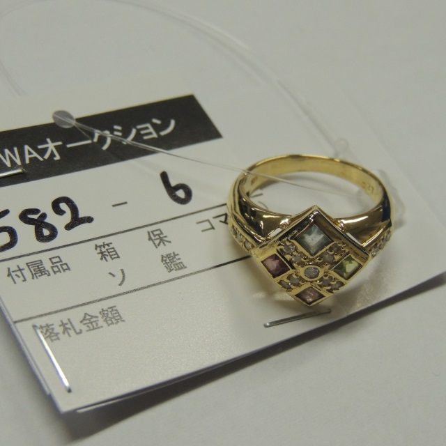 リング 色石マルチ ダイヤ K18 6.90g 石目:0.27