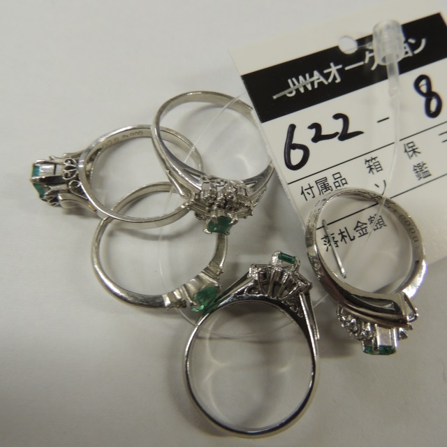 リング エメラルド ダイヤ 5本 Pt900 20.70g 石目:E1.34 D0.63