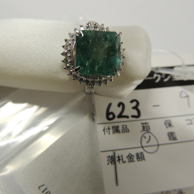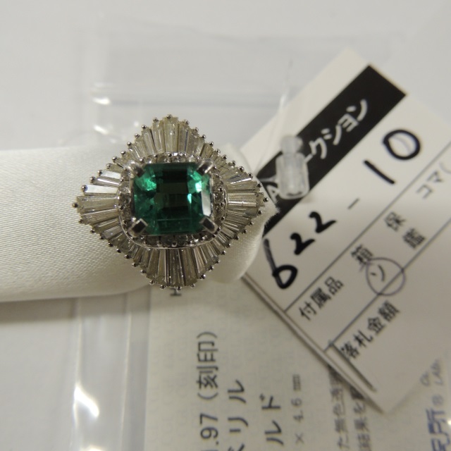 リング エメラルド ダイヤ Pt900 14.30g 中ソ 石目:E1.61 D1.97