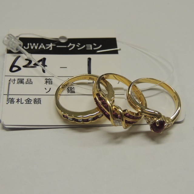 リング ルビー ダイヤ 3本 K18 8.40g 石目:R0.30 D0.19 0.08 0.05