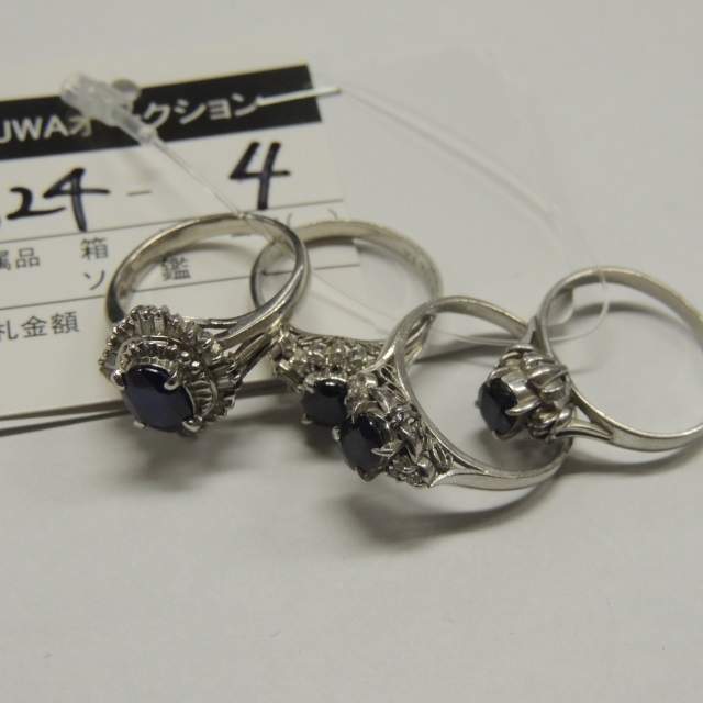 リング サファイア ダイヤ 4本 Pm900/Pt900 19.10g 石目:S3.55 D0.64