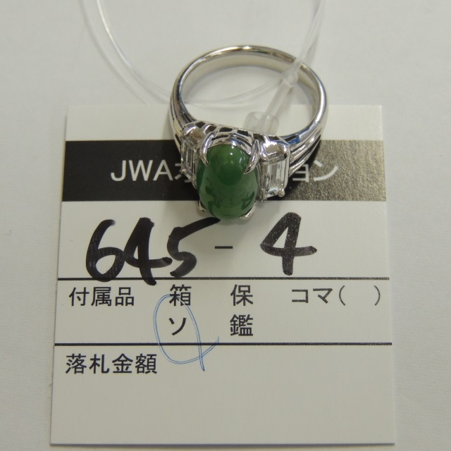 リング ヒスイ Pt900 7.20g 中ソ 石目:2.03 D0.87