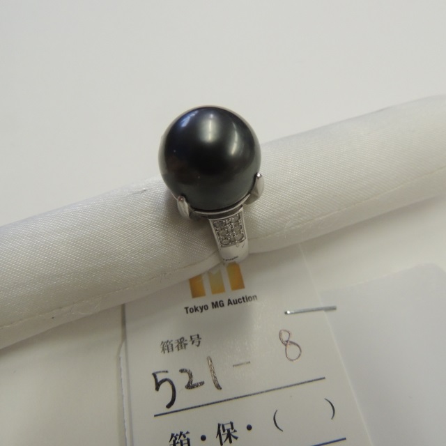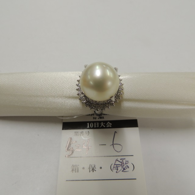 リング 真珠 13.6mm ダイヤ Pt900 14.30g 証 石目:D0.93