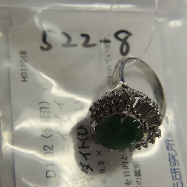 リング ヒスイ ダイヤ Pt900 11.30g 石目:3.12 0.98