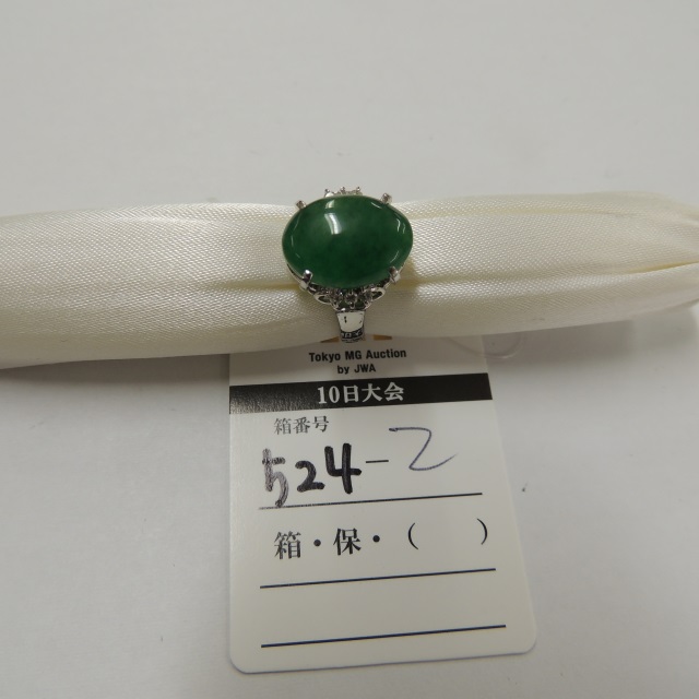 リング ヒスイ ダイヤ K18WG 14.30g 石目:7.44 0.12