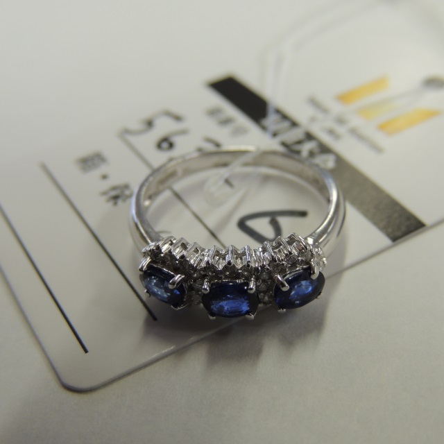 リング サファイア ダイヤ K18WG 3.50g 石目:0.58 D0.10