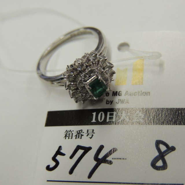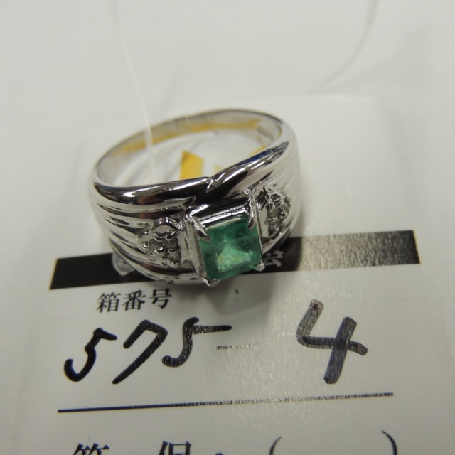 リング エメ ダイヤ Pt900 5.60g 石目:E24 D48
