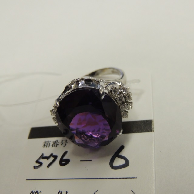 リング アメジスト ダイヤ Pt900 10.60g 石目:12.82 D0.28