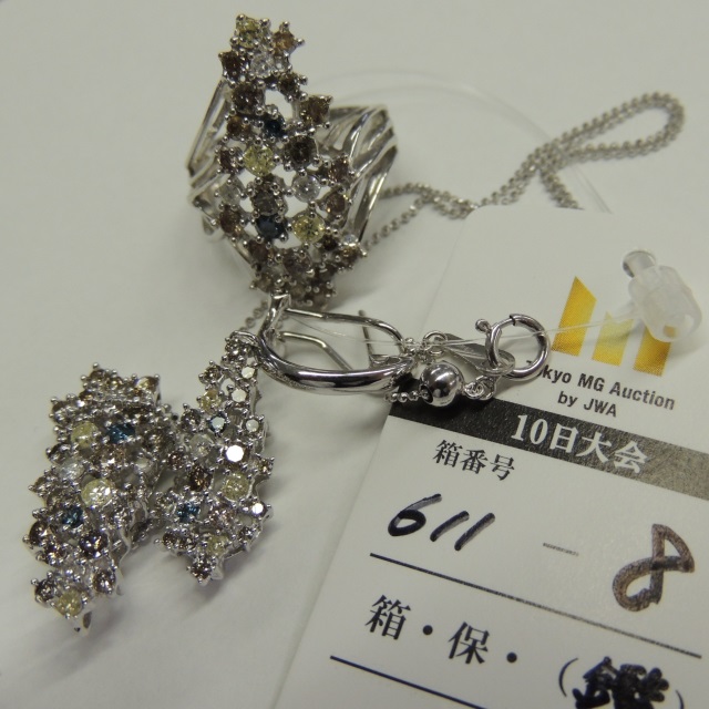 リング ペンネック ピアス片方 ダイヤ3点 2.00 1.50 0.75 0.75 K18WG 17.50g 鑑