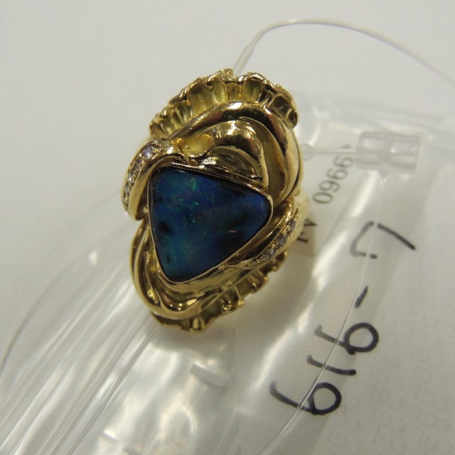 リング ボルダーオパール ダイヤ K18 11.60g 中ソ 石目:4.15 0.10
