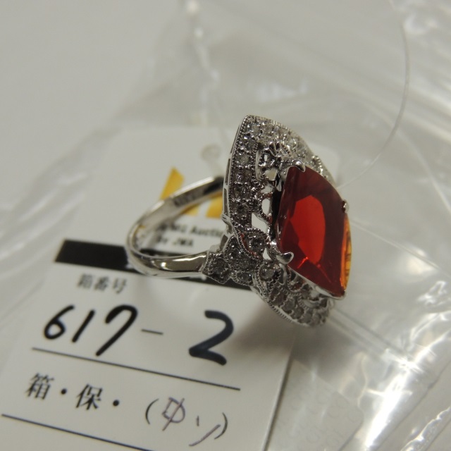 リング ファイアオパール ダイヤ K18WG 8.20g 中ソ 石目:2.98 D0.46