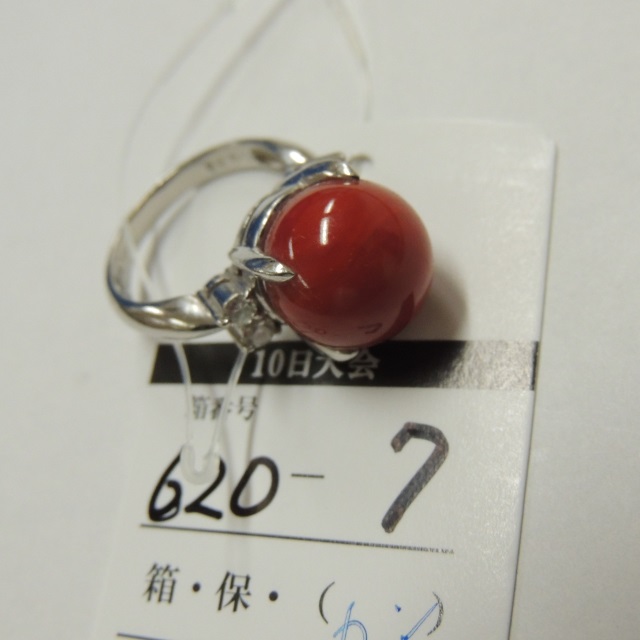 リング サンゴ ダイヤ 13mm Pt900 12.40g 鑑 石目:D0.33