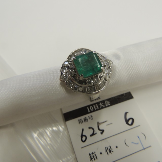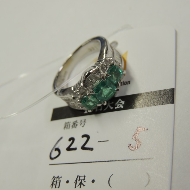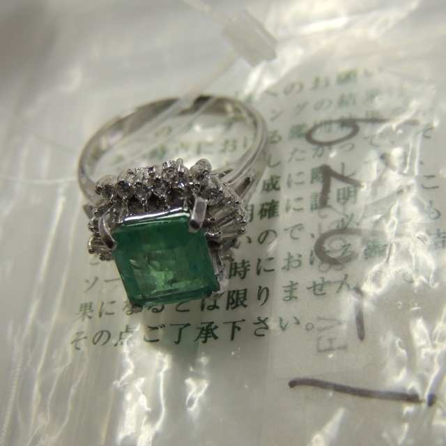 リング エメラルド ダイヤ Pt900 12.90g 中ソ 石目:E3.70 2.01