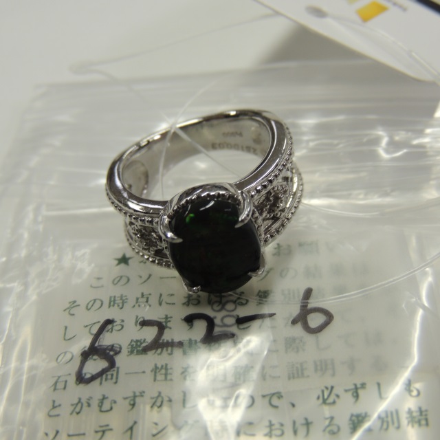 リング ブラックオパール ダイヤ Pt900 12.50g 中ソ 石目:2.61 D0.03