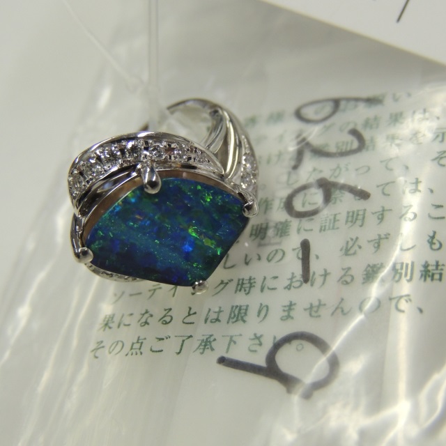 リング ボルダーオパール ダイヤ Pt900 13.90g 中ソ 石目:5.87 D0.33