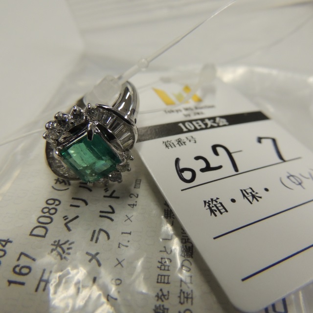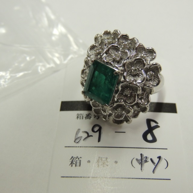 リング エメラルド ダイヤ Pt900 20.70g 中ソ 石目:3.371 0.38