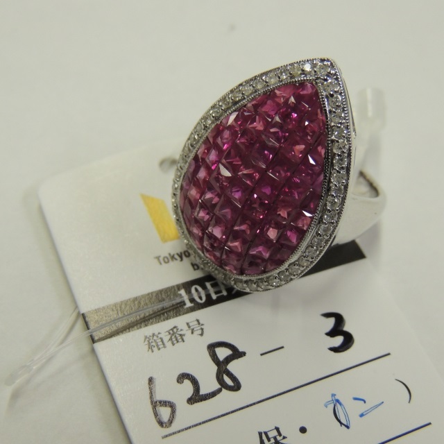 リング ピンク石 ダイヤ 750 14.70g 石目:2.49 D1.97