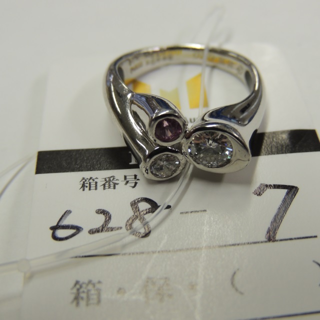 リング ピンクサファイヤ ダイヤ G-SI2-VG Pt900 8.70g 鑑 石目:0.14 D0.20 D0.443