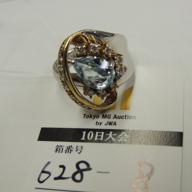 リング アクアマリン ダイヤ K18/Pt900 17.00g 鑑 石目:D0.35 1.40