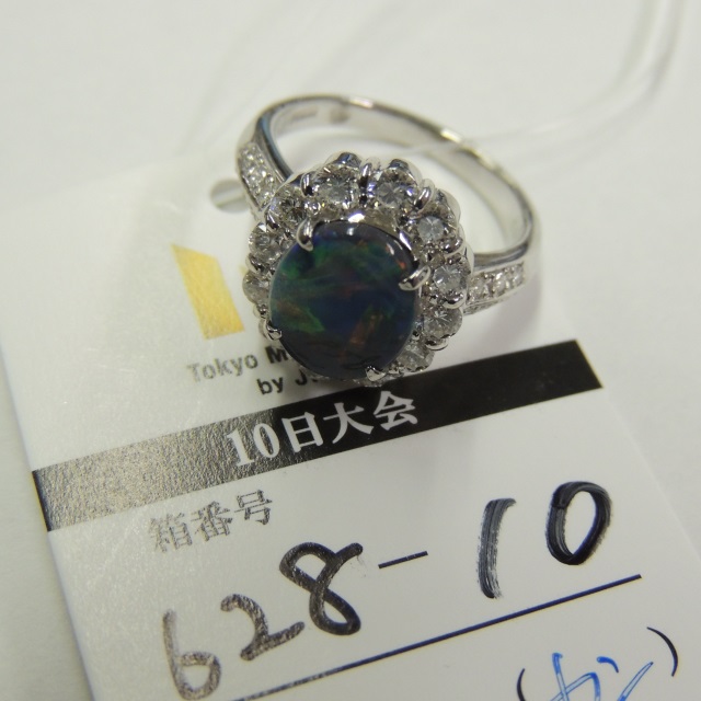 リング ブラックオパール ダイヤ Pt900 7.20g 鑑 石目:1.36 D1.03