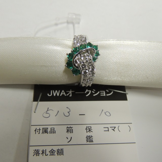 リング エメラルド ダイヤ Pt900 9.60g 石目:E0.48 D0.91