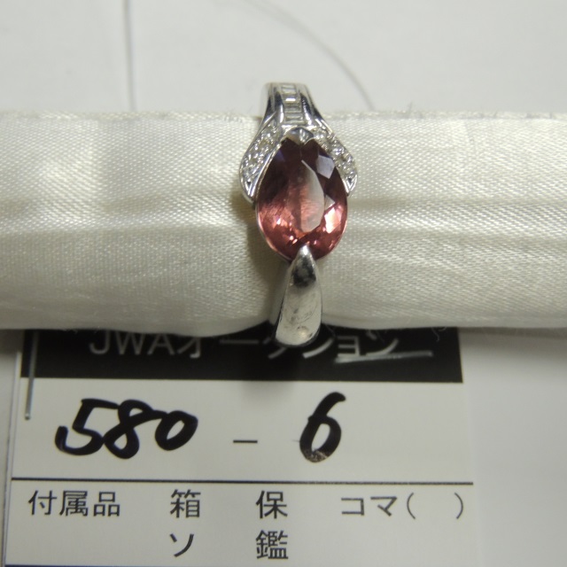 リング ピンク石 ダイヤ K18/PT900 4.00g 石目:0.35 D0.13