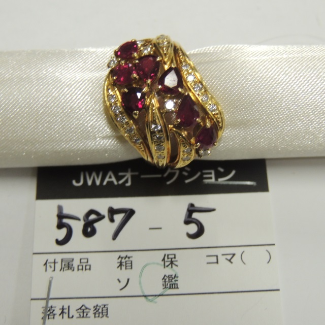 リング ルビー ダイヤ K18 8.60g 中鑑 石目: R2.04,D0.32