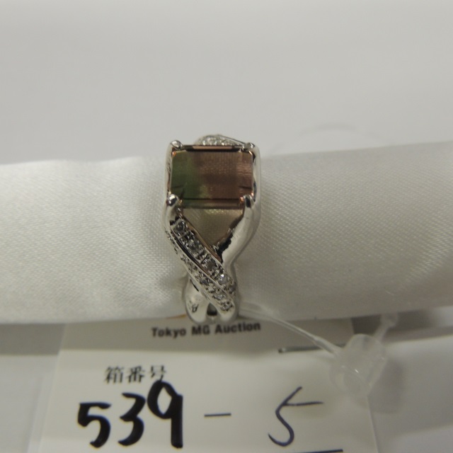 リング Pトルマリン マルチ ダイヤ K18WG 9.10g 石目:1.23 D0.16