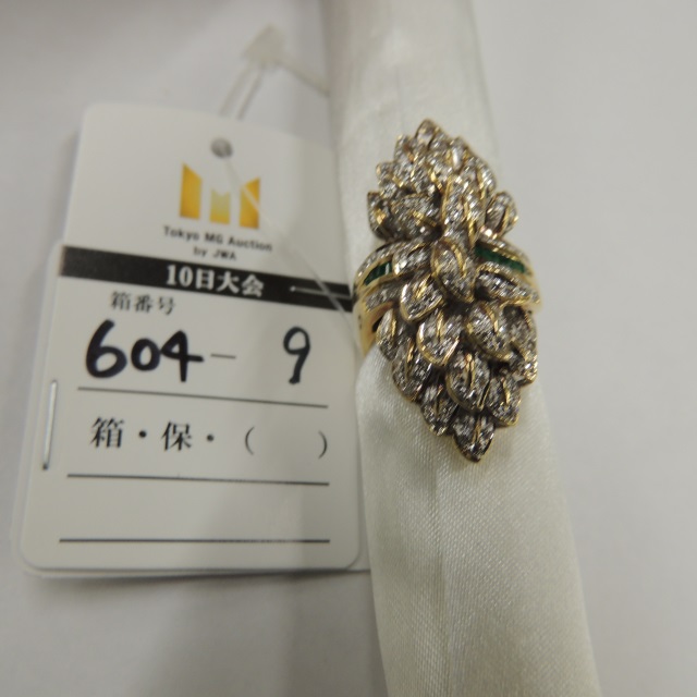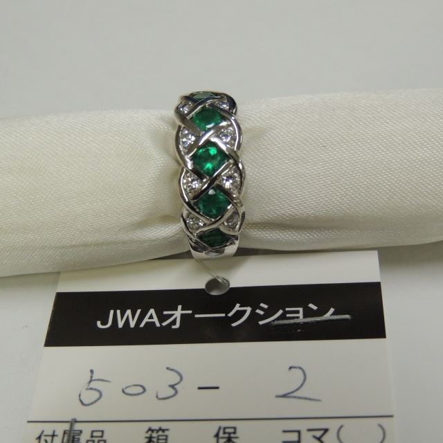 リング エメラルド ダイヤ Pt900 14.00g 石目:E3.20 D1.18
