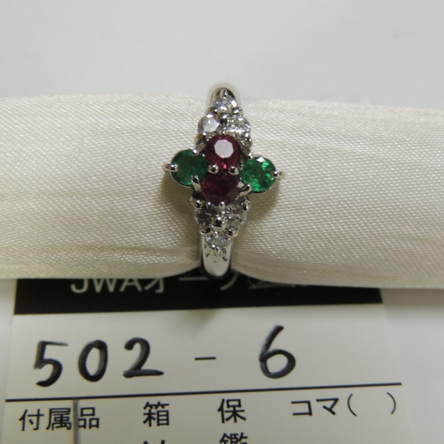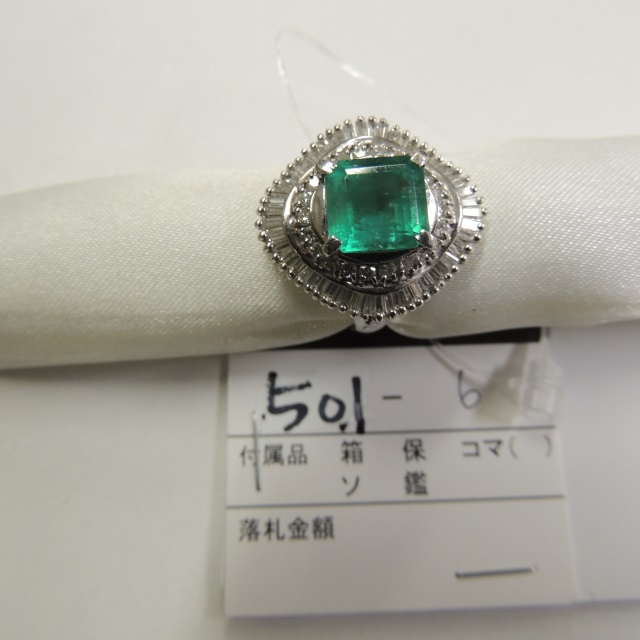 リング エメラルド ダイヤ Pt900 8.00g 鑑 石目:E0.65 D0.28