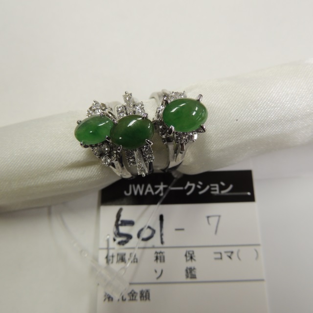 リング ヒスイ ダイヤ 3本 Pt900 17.50g 石目:J1.30 0.76 D0.38 0.10 0.12
