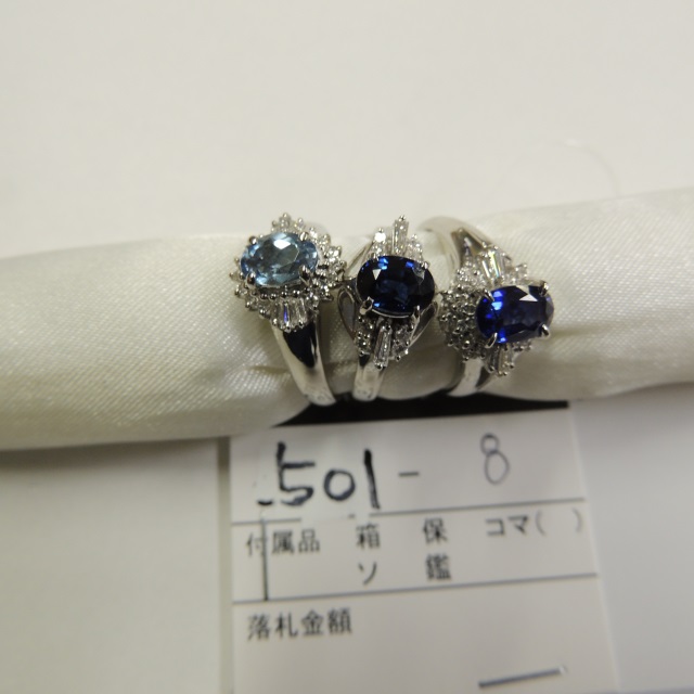 リング サファイア 水色石 ダイヤ 3本 Pt900 14.90g 石目:S1.25 1.07 D0.17 0.19 0.23 0.74